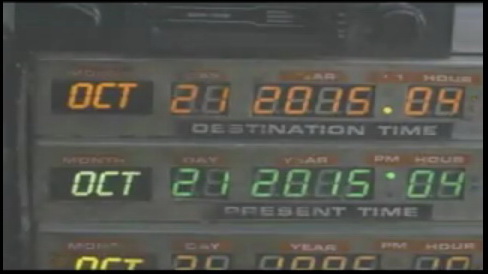 Bugun birçok yerde rastladım aşağıdaki fotoğrafı.Geleceğe Dönüş’de ki gidilen tarihin bugün olduğu filan.Uzun zamandır izlememiştim ama bana daha eski zamanlarmış gibi geliyor.Biraz nette bakınca gerçek tarihin bugunle alakasının olmadıgını gordum.Çünkü hatırladığım kadarıyla 1955-1985-2015 yıllarında 30 yıllık zaman dilimlerinde geçiyordu.Gerçi çok uzak değil 5 sene sonrası ama o günü görürsek güzel bir anı olur Geleceğe Dönüş fanatikleri için.