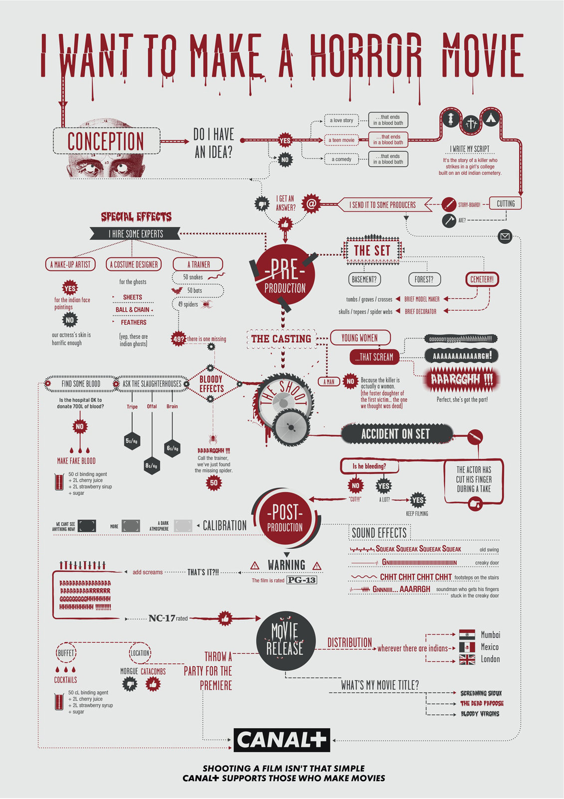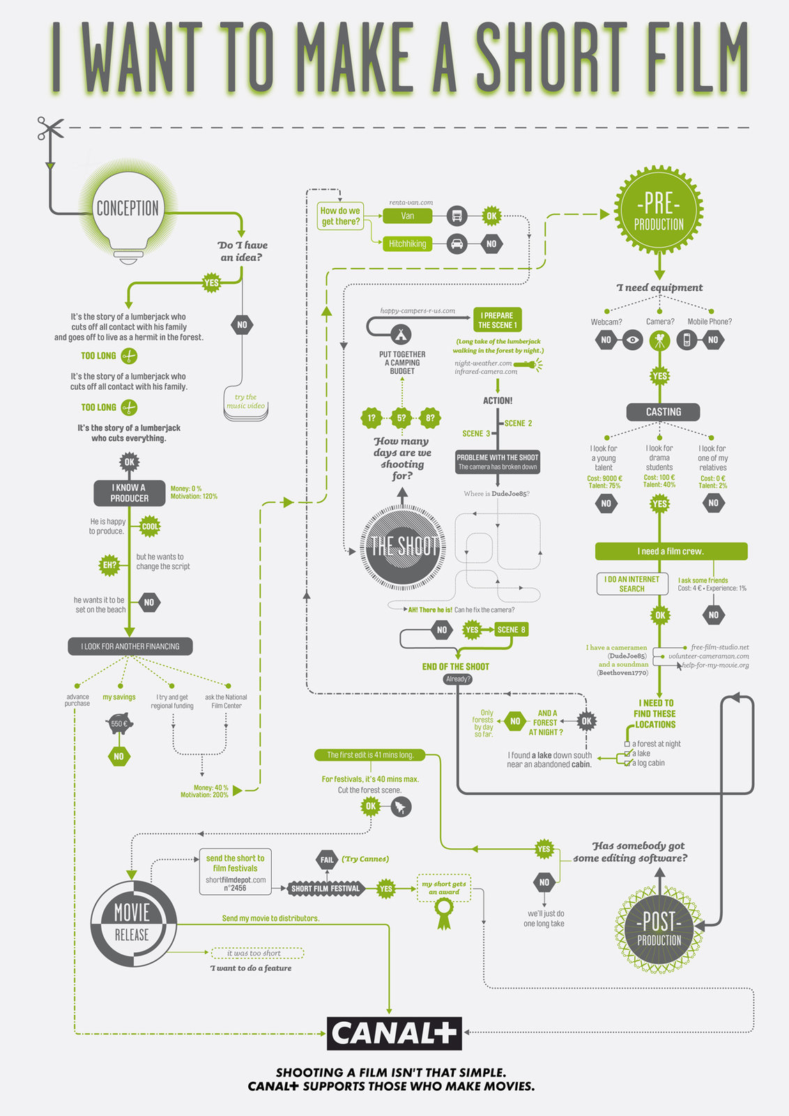 Adamlar üşenmemiş bütün aşamalarıyla bir film nasıl yapılırı çizmişler.Orijinal boyutuyla iyice incelemek gerekir.Karşılacağınız bütün durumları çok güzel mizahi dille açıklamışlar,şimdiden kolay gelsin ama sonuncusunu pek tavsiye etmem:)
