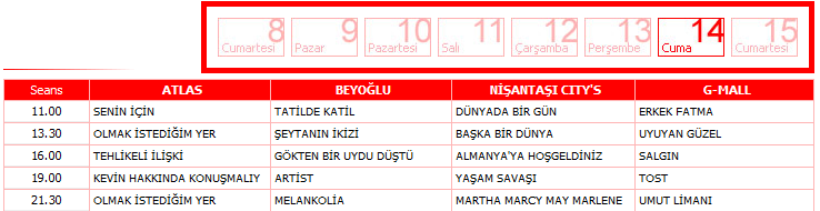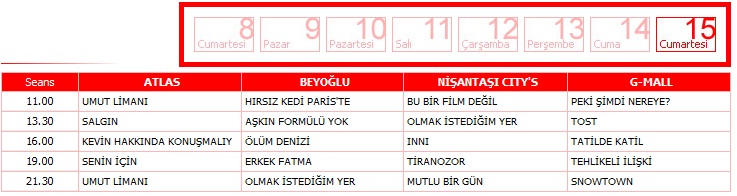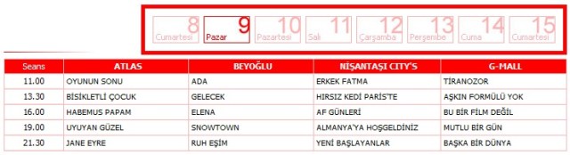 İstanbul en güzel sonbaharda güzel olurmuş.Artık dışarıda hafif bir ürpertiyle kendimizi sıcak ortamlara atmaya başladığımız şu zamanlarda İstanbul’a ve İstiklal’e en yakışan festival Film ekimi bu cumartesi başlıyor.Bu zamanlar okulların açılmasıyla arkadaşlara ve İstanbul’a kavuşmanın da simgesi olduğundan bütün yazın anılarının anlatılması için içten içe heyacanın yanı sıra sinemanın da heyecanıyla insan daha bir şevkli yürür İstiklal’de..Gerçi bilet fiyatlarının ucuzluğu,etkinlik alanlarının kısıtlılığı ve artan talep yüzünden artık neredeyse bilet bulanın imkansız olduğunu düşünürsek aslında burdan programı paylaşmam cok da akıl karı değil.Bisikletli çocuk ve Melankoli filmleri dışında diğer filmleri tavsiye ederim gidin görün:)