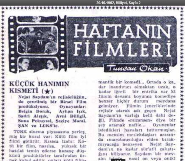 20 Ekim 201225 Ekim 2017 50 yıl önce bugün sinemalarda kaynak: http://gazetearsivi.milliyet.com.tr/ Paylaşmak Güzeldir Facebook üzerinde paylaş (Yeni pencerede açılır) Facebook X'te paylaşın (Yeni pencerede açılır) X WhatsApp'ta paylaş (Yeni pencerede açılır) WhatsApp Email a link to a friend (Yeni pencerede açılır) E-posta Daha fazla Share on Pinterest (Yeni pencerede açılır) Pinterest Share on LinkedIn (Yeni pencerede açılır) LinkedIn Beğen Yükleniyor... İlgili