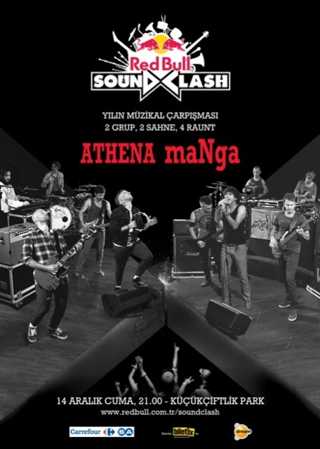 2006’dan bu yana dünyanın çeşitli ülkelerinde, o ülkenin ünlü gruplarını çarpıştıran Red Bull SoundClash, Türkiye ayağını 14 Aralık 2012’de Küçükçiftlik Park’ta gerçekleştiriyor. Bir tarafta Ska’nın ustası Athena, bir tarafta Alternatif Rock müziğin devi MaNga, sizi müthiş bir müzik şölenine davet ediyor.