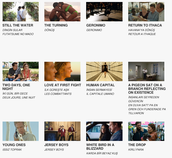 Ekimde istanbul film festivaliyle güzel. Havalar yavaş yavaş soğumaya başladığı günlerde klişe tabirle içimizi ısıtan gönlümüzün sultanı film ekiminin programı belli oldu. Sitesine bir kaç gündür girmeye çalışıyordum. En sonunda bugün girmeyi başardım ve el emeği göz nuru programını siz sinema severler için hazırladım. Haftaiçi gündüz seanslarına gidemeyecek 9-5 çalışanlar için belediyemizin bir hizmeti daha. Gidemeyeceğiniz seansları görüp iç geçirmemek için alttaki programa bakmanız şiddetle tavsiye olunur. Keyifli seyirler.