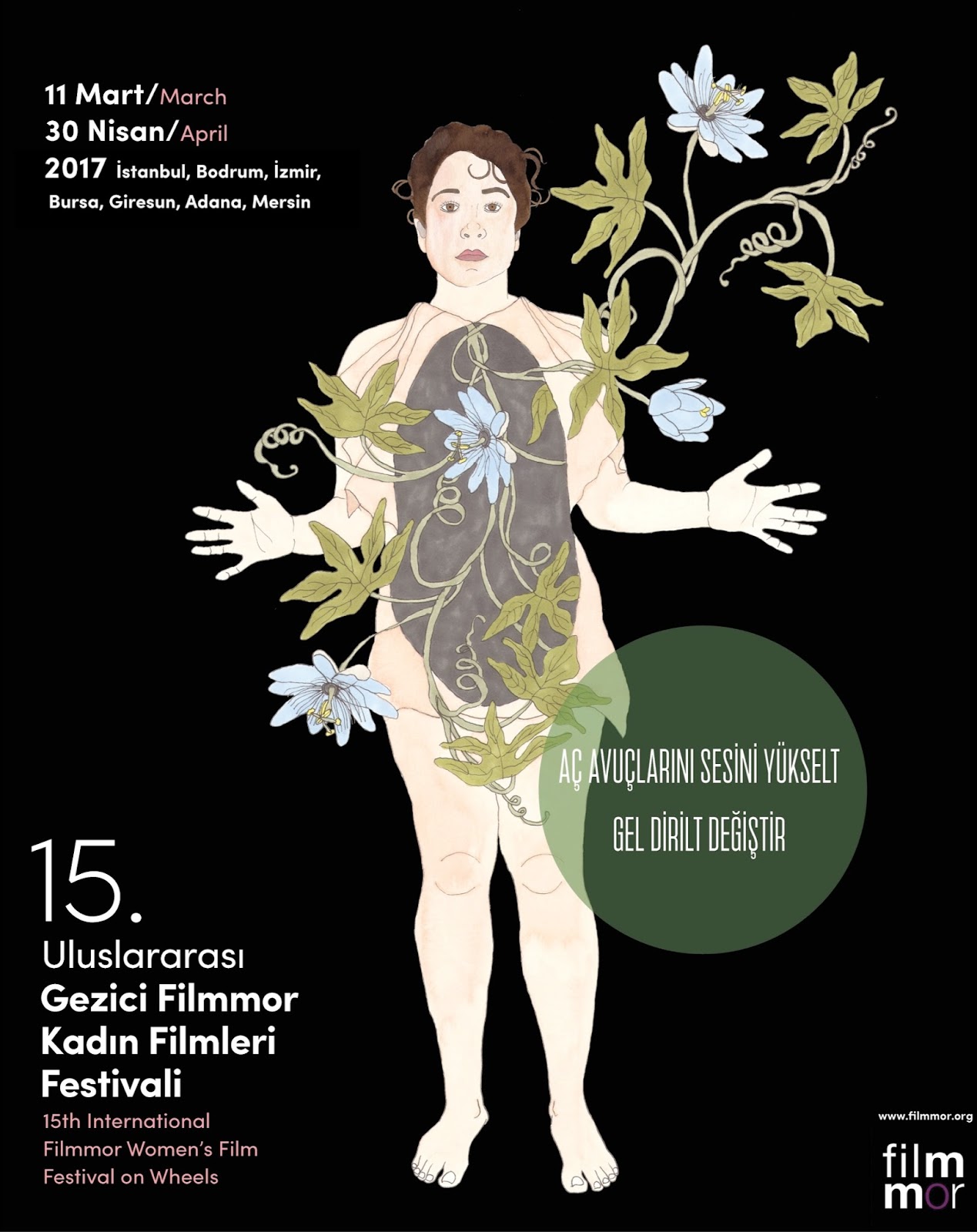 15. Uluslararası Gezici Filmmor Kadın Filmleri Festivali; 11-18 Mart 2017’de İstanbul’da, Fransız Kültür Merkezi’nde, başlayacak. İstanbul’un ardından Adana, Bodrum, Bursa, Giresun, Mersin ve İzmir’de sürecek. Festival 11 Mart – 30 Nisan arası 7 şehirde kadınlarla olacak.